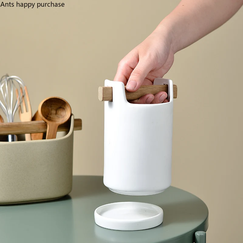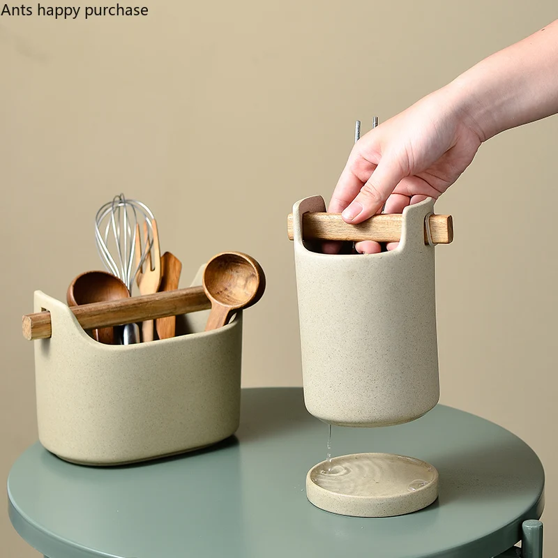 Keep your kitchen elegant and organized with this luxury ceramic utensil holder. Designed with a modern minimalist style and a natural wooden base, it keeps chopsticks, spoons, knives, and tools clean, dry, and easy to access. Perfect for countertops, dining tables, and kitchen shelves.