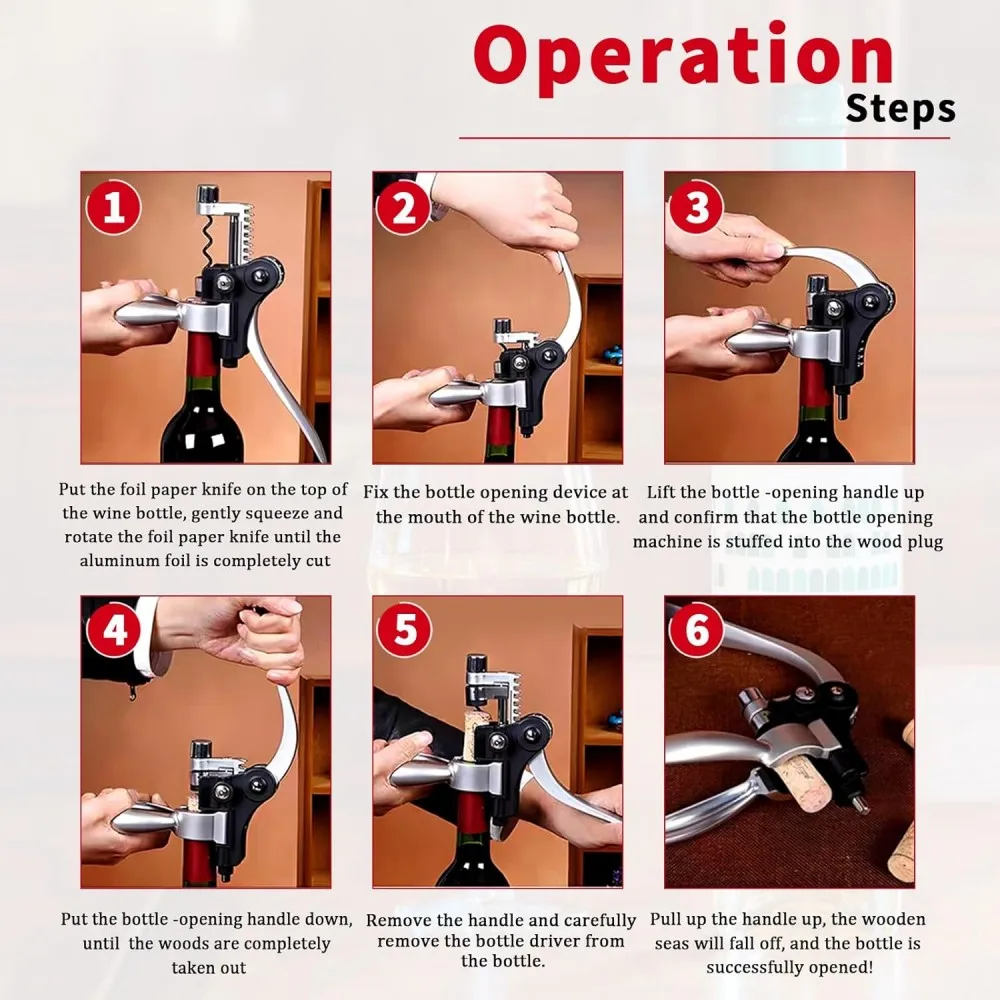 Includes a rabbit-style wine opener, foil cutter, bottle stopper, drip ring, and wine pourer. Designed for elegant presentation and long-lasting performance—ideal for home use, parties, and gifting.